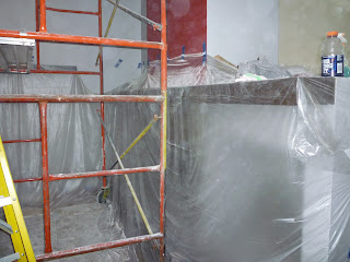 The guys had to take out all the drywall, and re-fit/level the walls...joy joy!