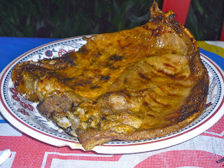 The potato is so freaking good!!!!Ken's chuleta - thin piece of pork grilled to perfection, he liked the chimichurri type sauce